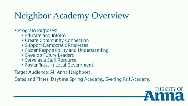 During Tuesday’s City Council meeting, the Anna City Council recognized the graduates of the 7th Neighbor Academy.