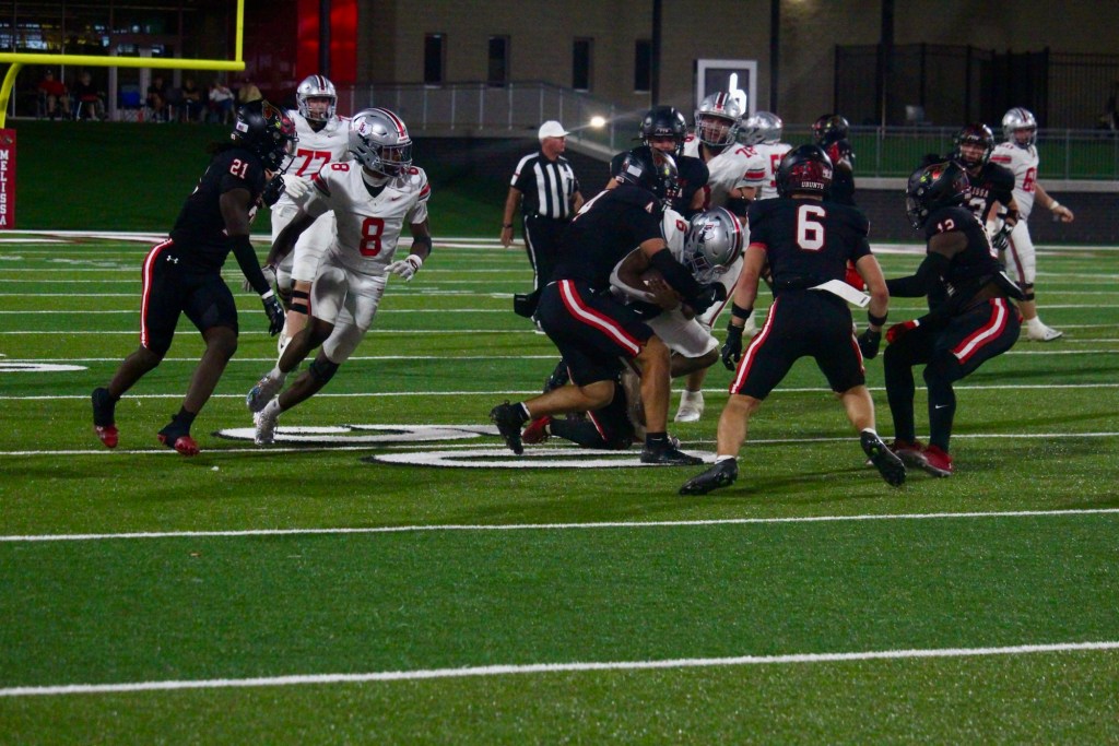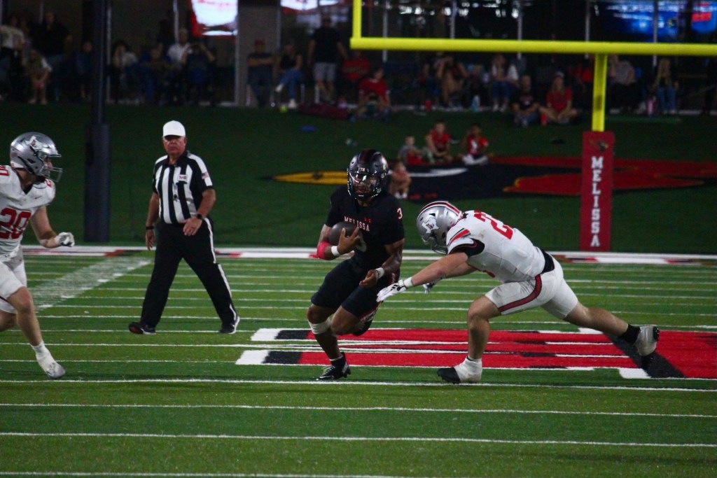 Melissa’s defense forced multiple interceptions, including a highlight-reel pick-six by Izayah Cordell, while the offense piled up points on the ground and through the air.