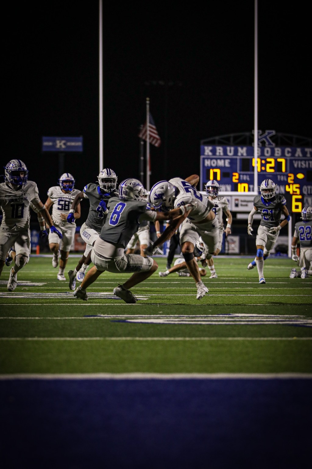 The Bobcats regained momentum in the second quarter, using quarterback Elijah Guerrero’s arm to set up big plays. A field goal and a short touchdown run gave Krum a 17–7 advantage at halftime.